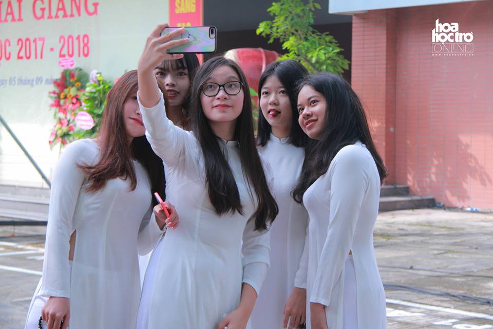 Các bạn nữ sinh Ams xinh tươi trong tà áo dài thướt tha chào mừng năm học mới.
