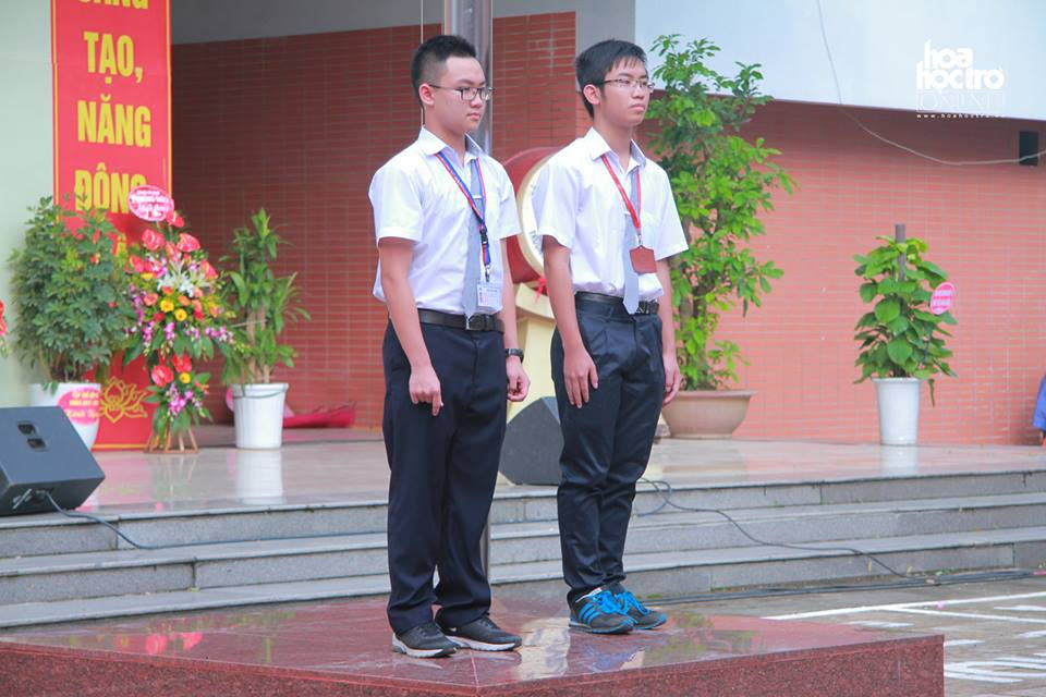 Hai học sinh xuất sắc nhất được vinh dự thực hiện nghi thức kéo cờ.