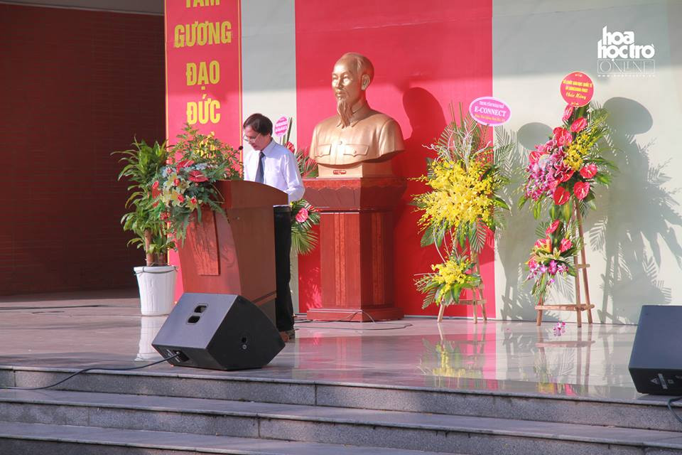 Thầy giáo Bùi Văn Phúc - Phó hiệu trưởng nhà trường đọc thư của Chủ tịch nước gửi đến các bạn học sinh trước khi bắt đầu năm học mới.