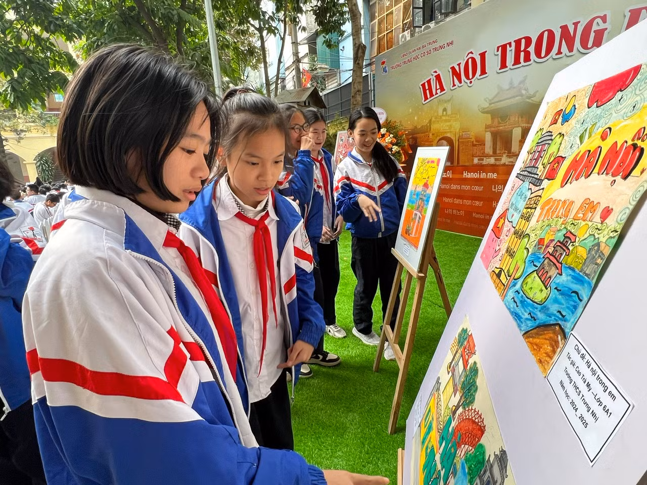 Trong khuôn khổ chương trình, Trường THCS Trưng Nhị tổ chức triển lãm tranh về tình cảm thầy trò, tình yêu quê hương đất nước cũng như danh lam thắng cảnh của Thủ đô Hà Nội; triển lãm sách… thu hút đông đảo học sinh tham quan.