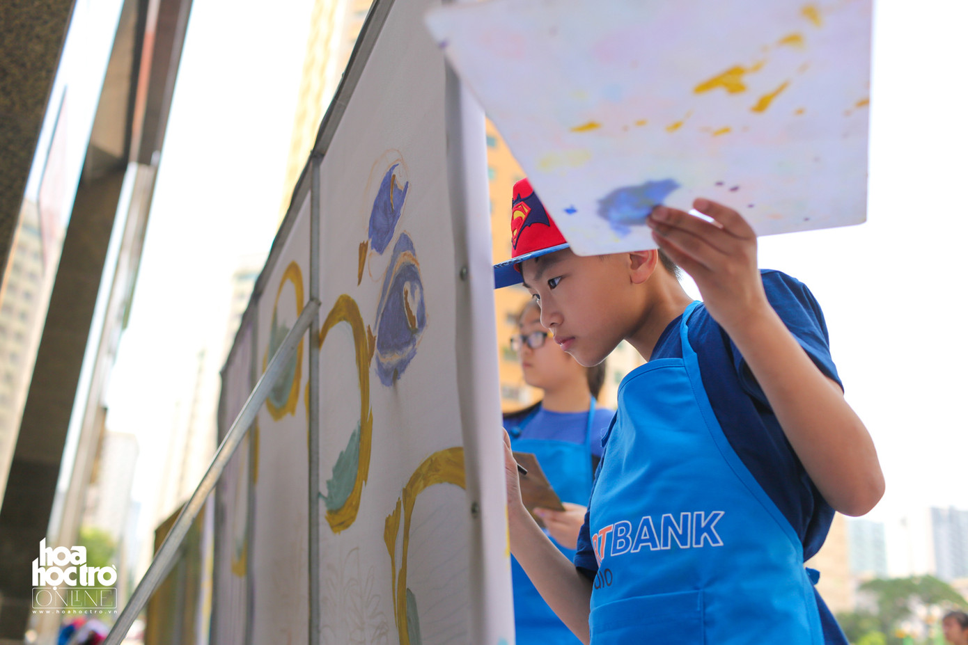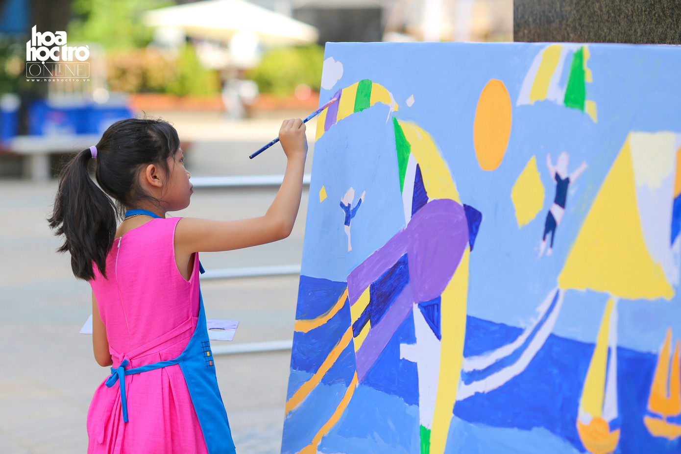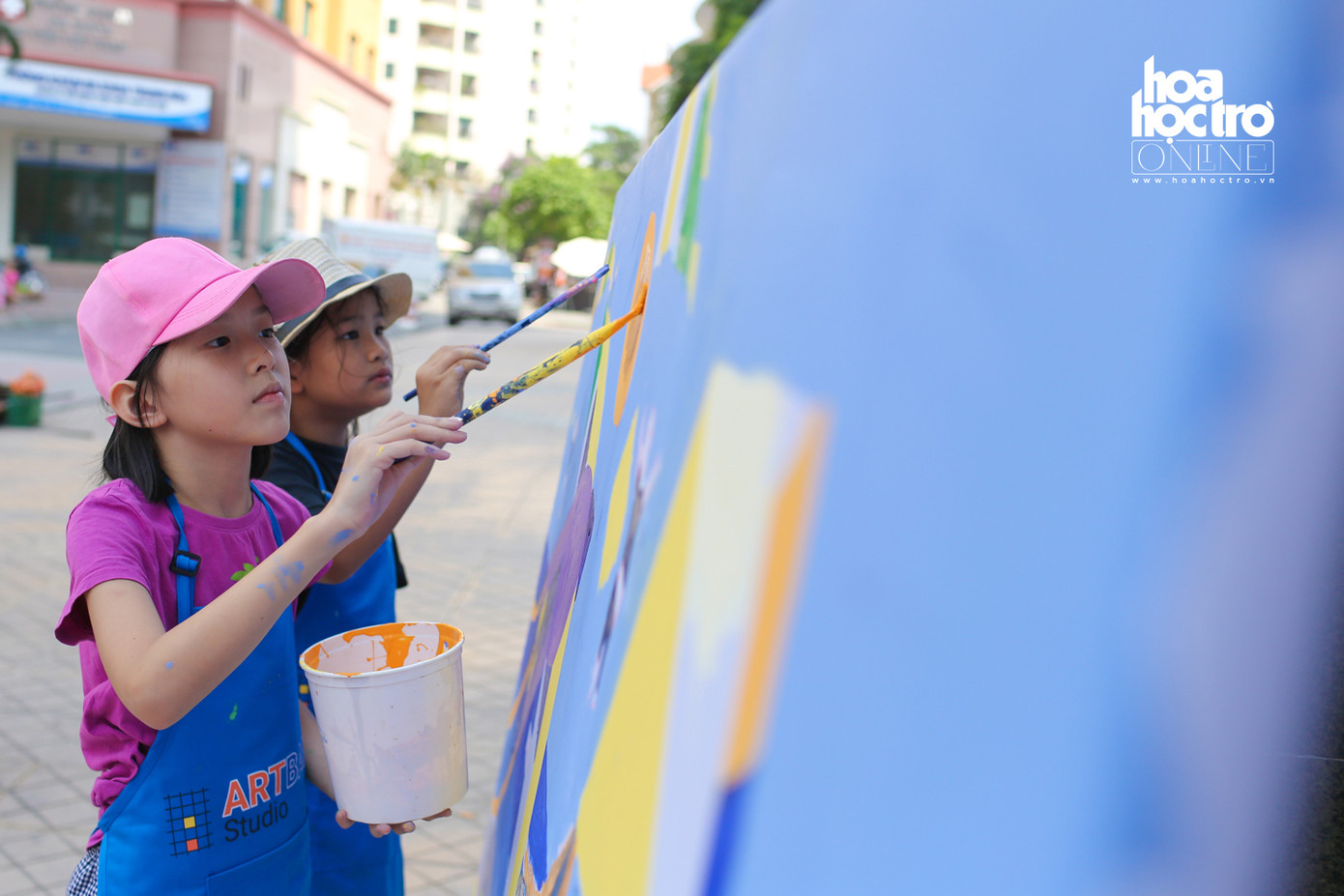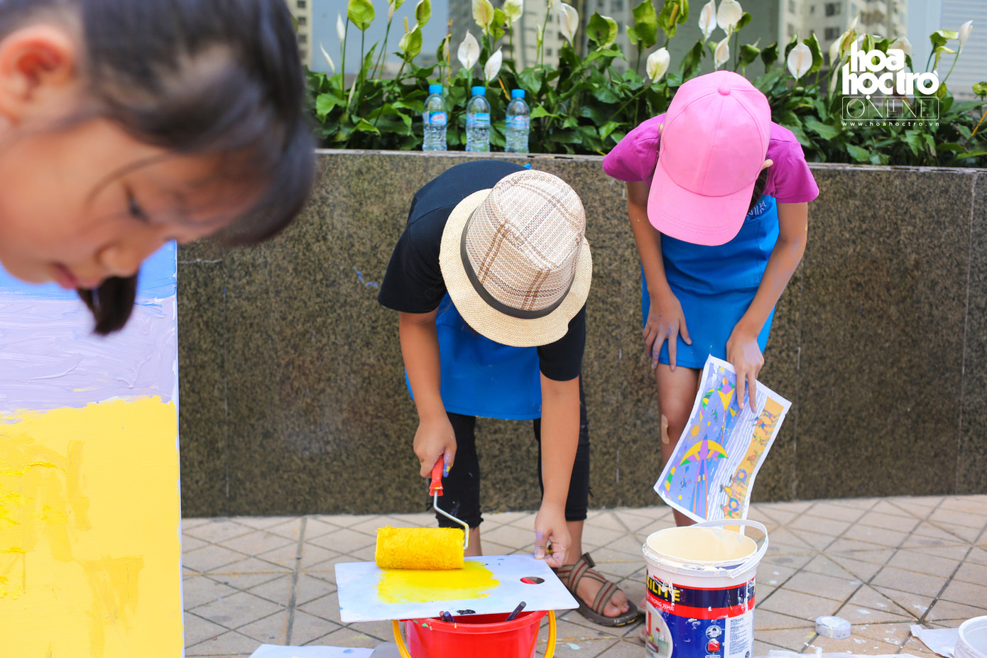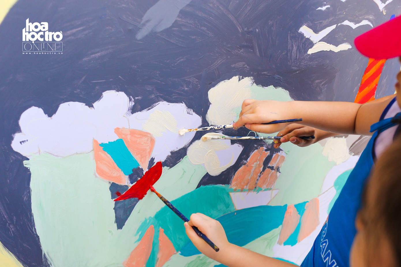 Nhằm tạo ra một sân chơi bổ ích cho các bé đang nghỉ Hè, một lớp học hội họa đã cùng với gần 20 bạn nhỏ đóng vai học sĩ để vẽ nên những bức tranh khổng lồ.