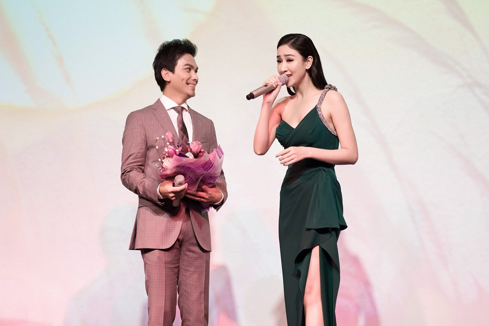 Tham gia với vai trò khách mời trong minishow của danh ca Mạnh Quỳnh mới đây tại TPHCM, Hà Thu xuất hiện với bộ váy xanh quyến rũ của NTK Lê Thanh Hòa và chinh phục khán giả bởi giọng hát ngọt ngào cùng phong cách trình diễn duyên dáng...
