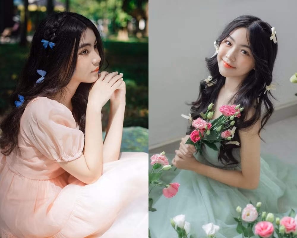 Hạt Dẻ cũng chỉ cần gắn một vài chiếc cặp nơ nhỏ xíu lên mái tóc dày như mây, chọn một bộ váy hoa tay bồng đúng chuẩn công chúa cổ tích là có ngay bộ ảnh đẹp hoàn hảo. Từ khi mới 13 tuổi, Hạt Dẻ đã cao gần 1m70 nên chắc hẳn đến bây giờ, cô bạn đã vượt qua cột mốc này.