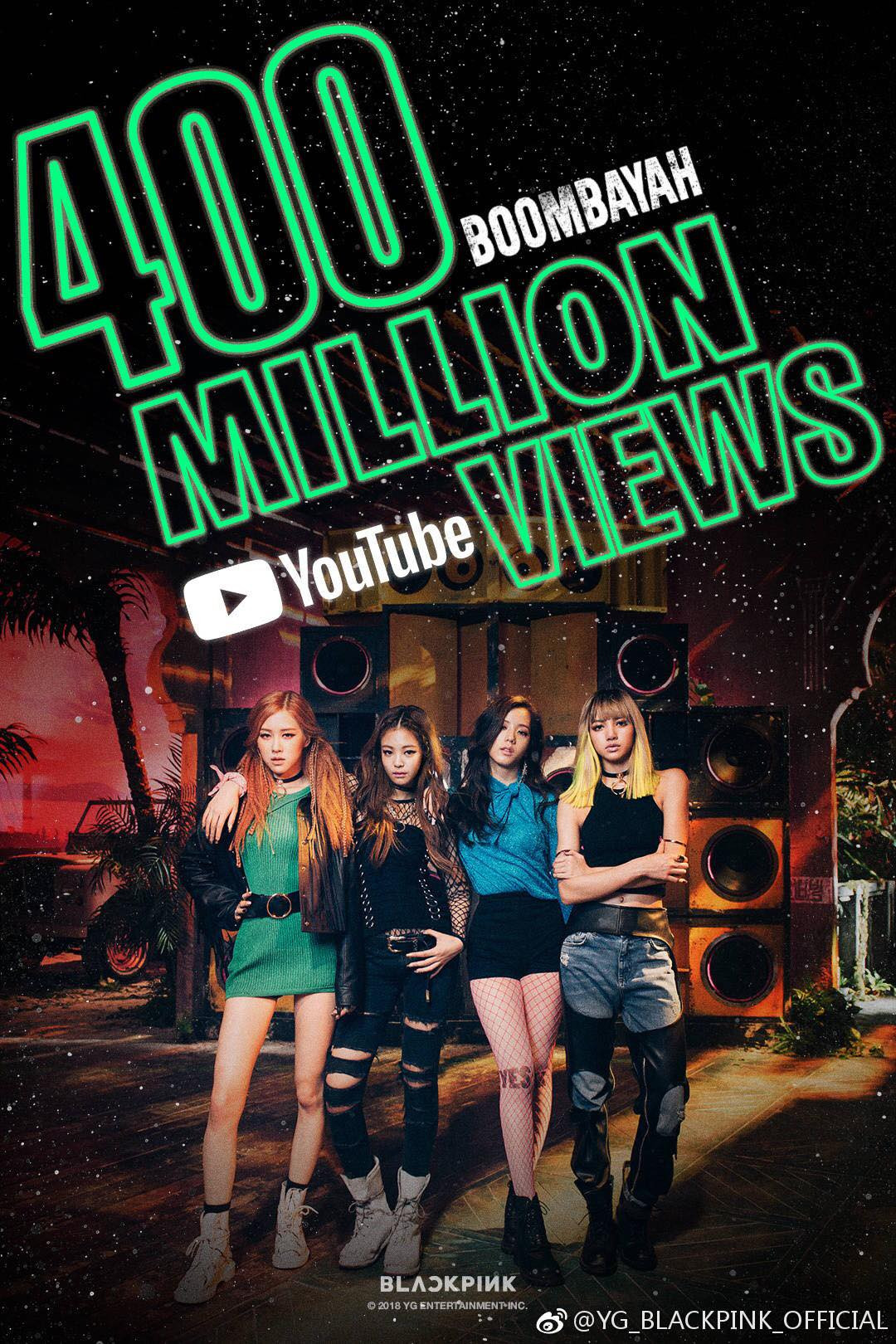 Các Blink được đón tin vui khi MV Boombayah cán mốc 400 triệu view trên YouTube, chính thức đưa BlackPink trở thành girlgroup đầu tiên có hai MV vượt qua mốc view này.