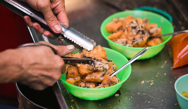 Bánh được chiên qua ba lớp dầu để đảm bảo độ giòn, thơm.