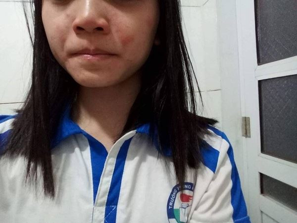 Học sinh bị mẩn ngứa, phát ban ở mặt, tay.