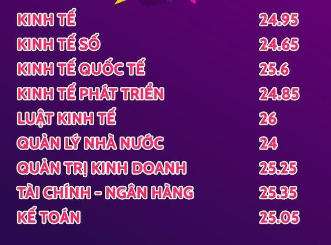 Ngành Ngôn ngữ Anh lấy 36,9, tính trên thang điểm 40. Các ngành còn lại tính thang điểm 30, dao động từ 27 đến 27,9.