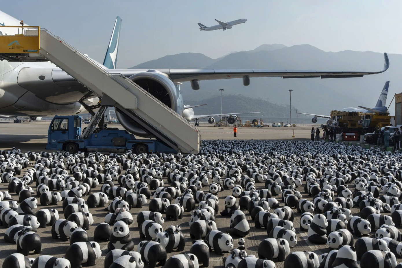 | Theo CNN, 2.500 con gấu trúc sở dĩ không khiến du khách bỏ chạy là vì chúng được làm từ cao su tái chế và nhựa thông cùng nhiều vật liệu khác. Chúng xuất hiện ở sân bay vì nằm trong chuỗi sự kiện PANDA GO! FEST HK - triển lãm lớn nhất Hong Kong về chủ đề gấu trúc. Ảnh: AP. |