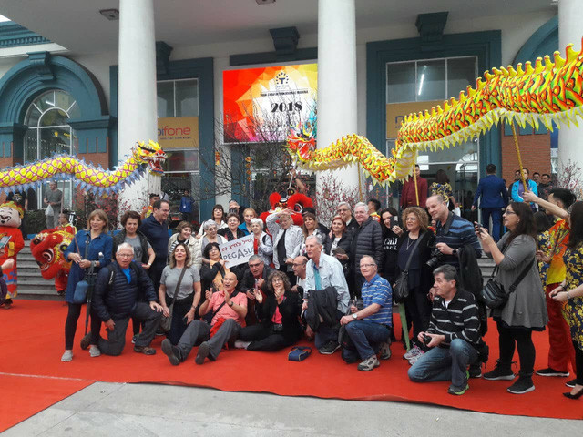 Du khách tỏ ra thích thú trước sự đón tiếp và chụp ảnh lưu niệm.