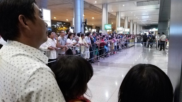 Càng về khuya, lượng người đổ về sân bay Tân Sơn Nhất càng đông bất thường. Có nhiều trường hợp, một gia đình 10 người đến đón 1 người. Nhiều người cố gắng đứng lên cao để ngóng người thân, theo Vietnamnet.