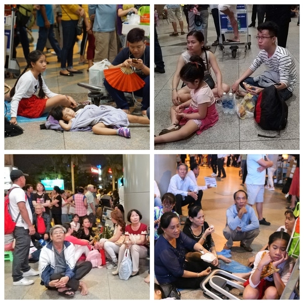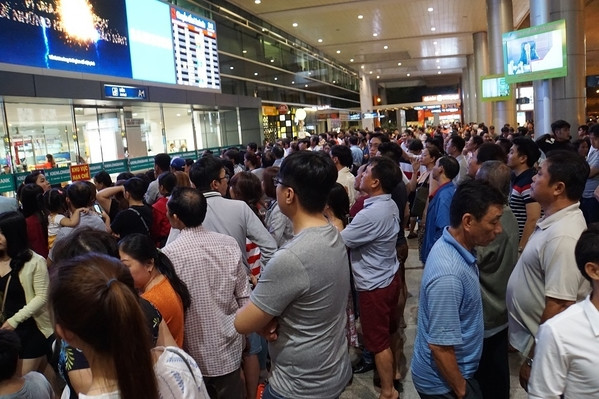 Việc các chuyến bay bị chậm, hủy khiến nhiều người lo lắng. Họ liên tục nhìn lên màn hình hiển thị thông báo các chuyến bay đến Tân Sơn Nhất.