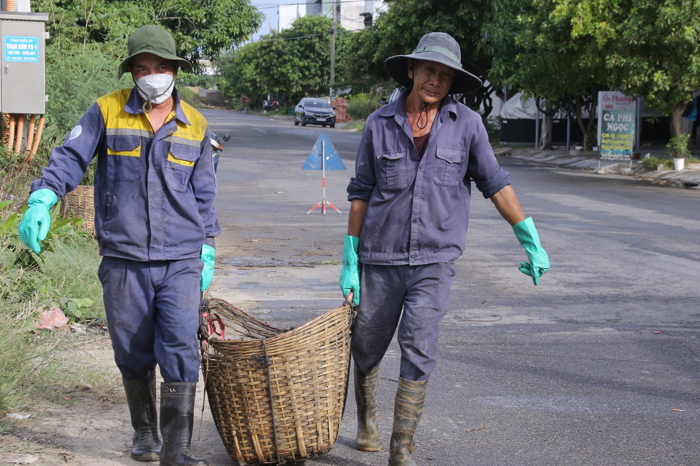 Trong ngày 13/9, hàng chục nhân viên thuộc Công ty Thoát nước và Xử lý nước thải Đà Nẵng đang tiến hành vớt và thu dọn xác cá trên kênh.