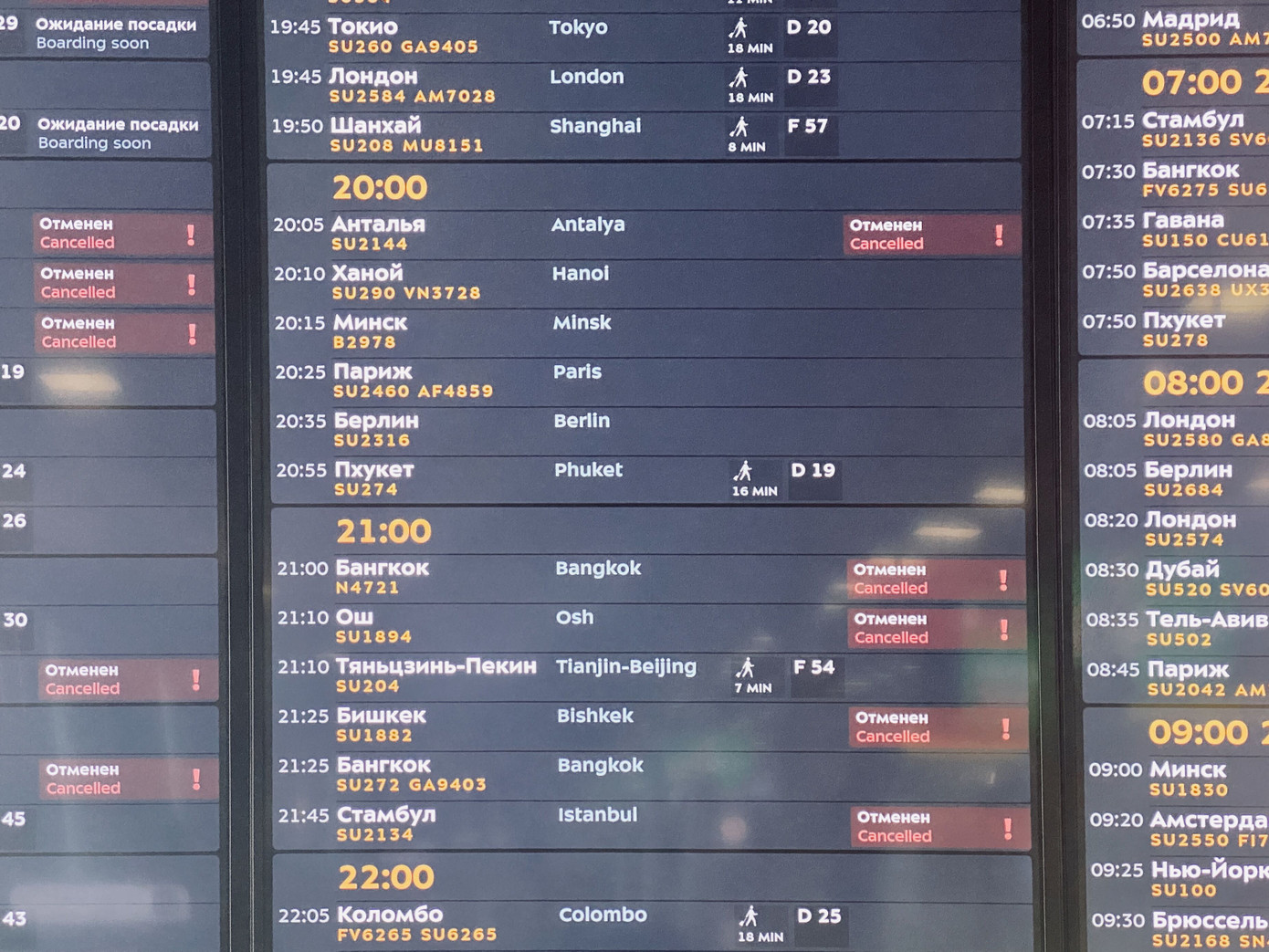 16 giờ giờ Moscow ngày 26/3, 4 tiếng trước giờ bay: Có chút hy vọng vì sân bay đang cho người Việt vào check-in chuyến SU290, nhóm transit của chúng tôi bớt lo lắng nhưng vẫn hồi hộp vì phải đặt chân lên máy bay mới an tâm được. Và đúng như vậy, chỉ 1 tiếng sau, bảng điện tử bên NGOÀI sân bay hiển thị: Chuyến bay SU290 cancelled. Bạn bè tôi gửi link baonga.com cho chúng tôi đọc, 99% khả năng chuyến bay sẽ đi tàu rỗng về mà không chở khách Việt Nam nữa.