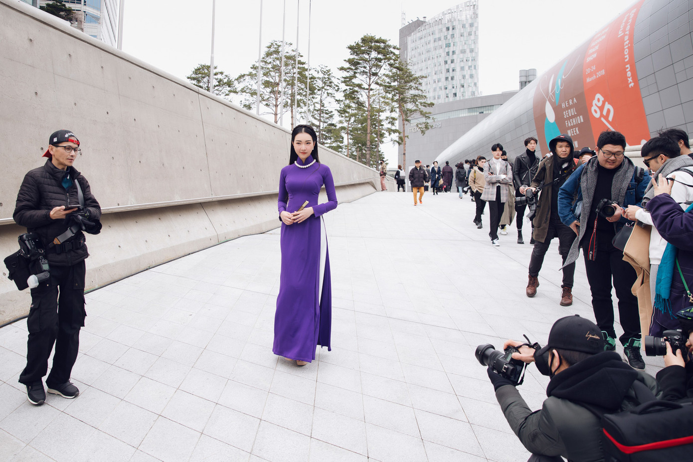 Trong ngày thứ 2 của Seoul Fashion Week, Ngọc Trân tiếp tục mang hình ảnh chiếc áo dài để giới thiệu với giới mộ điệu thời trang. Lần này, người đẹp diện chiếc áo dài tím Huế của NTK Khánh Shyna. Điểm nhấn của bộ trang phục toát lên từ chiếc vòng ngọc trai và chiếc quạt. Ngọc Trân sử dụng lối trang điểm nhẹ nhàng để tôn lên vẻ đẹp tự nhiên, mộc mạc của người con gái Huế.