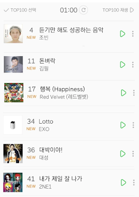 Không ít người còn khao khát được... trúng sổ xố trong năm 2019. Jackpot của Kim Feel leo lên hạng 11 và Lotto của EXO xếp hạng 34, dù phần lời của hai ca khúc này không hề liên quan đến chuyện "đỏ đen".