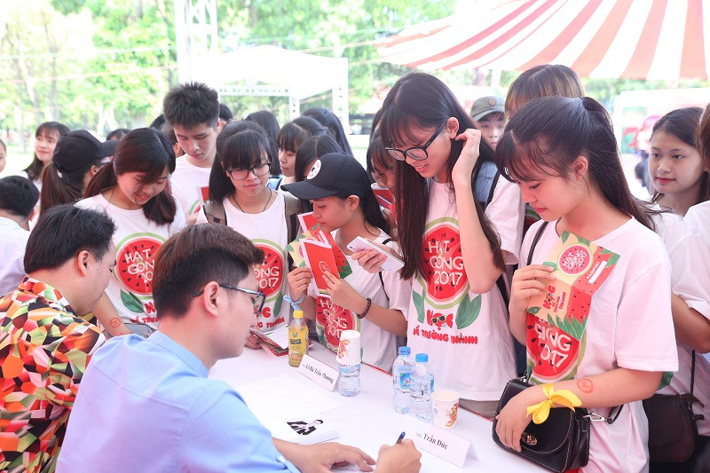 Bạn Vũ Linh, học sinh trường THPT Vân Nội - Đông Anh chia sẻ: “Mình và một nhóm bạn cùng lớp đã hẹn nhau từ rất sớm, bắt chuyến xe buýt đầu tiên để đến tham gia Hạt giống. Đến đây, mọi thắc mắc, băn khoăn, lo lắng đều được thầy, cô nổi tiếng giải đáp tận tình”.