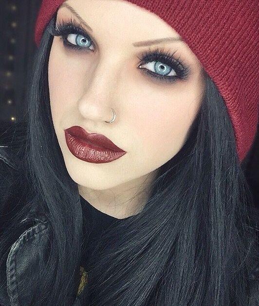 Mắt khói tone nâu với mascara thật dày cùng tông son đỏ tạo nên một sức hút kỳ lạ. (Ảnh: Glam&Gore)