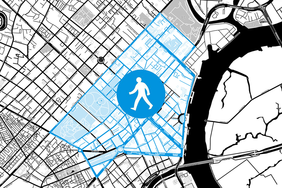 Theo kế hoạch ban đầu, các khu đi bộ sẽ được thiết kế đặt tại trung tâm thành phố. Khu đi bộ sẽ rộng 221 hecta với bán kính 7.35 km. Theo kế hoạch, một phần của các con đường trung tâm như Lê Duẩn, Nam Kỳ Khởi Nghĩa, Pasteur, Hai Bà Trưng và Mạc Đĩnh Chi sẽ trở thành các con đường đi bộ. Các quan chức thành phố dự kiến sẽ hoàn thành dự án trong tuần này để trình UBND Thành phố trước dịp lễ 30/4.