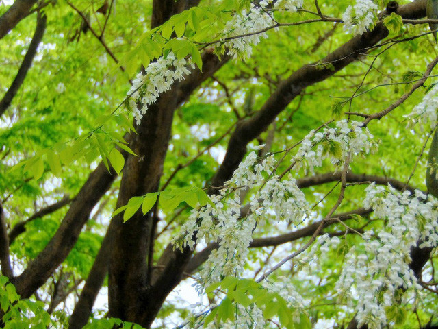 Không rực rỡ như hoa phượng, không kiêu kỳ như violet, sưa chọn cho mình sắc trắng, tinh khôi, nhẹ nhàng. (Ảnh: H.N)