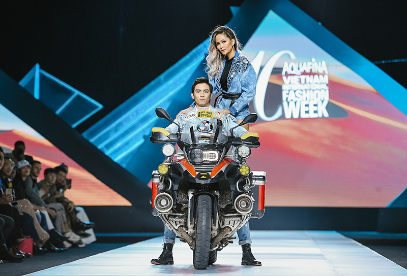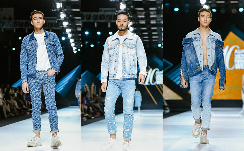 Quán quân The Face - Mạc Trung Kiên cùng Á hậu Thúy Vân sải bước trong những bộ denim độc đáo.