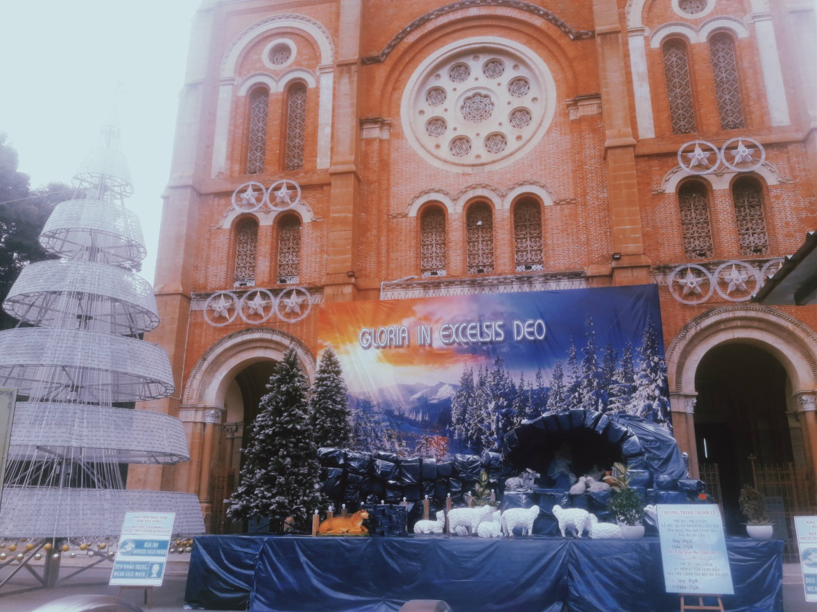 Dù đang trong quá trình trùng tu, nhà thờ Đức Bà Sài Gòn vẫn là một điểm đến vô cùng thú vị trong mùa Giáng sinh năm nay. Đặc biệt, từ nhà thờ Đức Bà, bạn có thể ghé đường sách Nguyễn Văn Bình và Bưu điện thành phố để đọc sách và chụp hình "sống ảo".