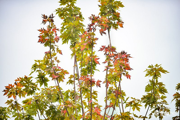 Tuy mới chỉ có một vài cây đổi màu lá nhưng đứng từ xa, người xem cũng có thể nhận ra màu sắc đặc trưng của lá phong đỏ.