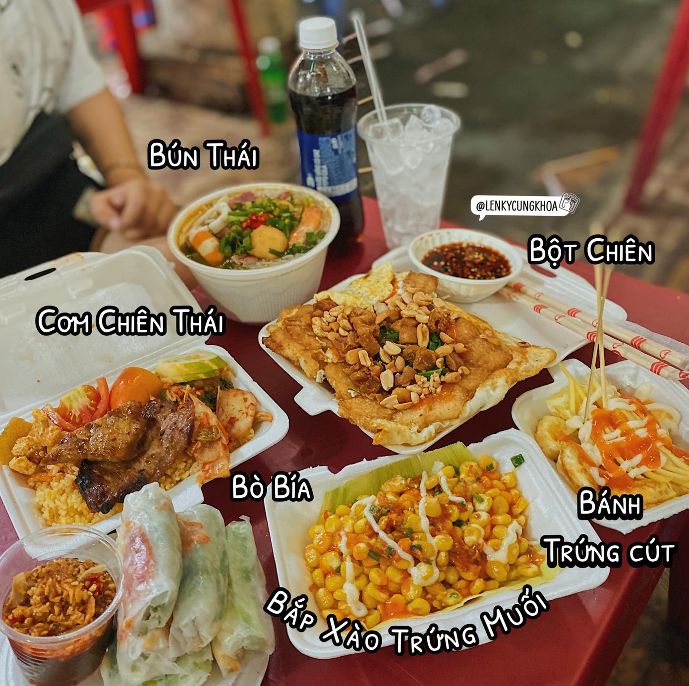 Hẻm 76 ê hề món ngon. Cơm chiên Thái (25K) ghi điểm bởi phần thịt nướng đậm đà, mềm và thơm ơi là thơm. Tuy nhiên, nếu cơm nấu mềm hơn và kim chi bớt chua hơn nữa là hoàn hảo! Bún thái (30K) rất dễ gây nghiện bởi phần nước dùng nêm nếm chua chua cay cay; có tôm, mực, cá viên, bánh bao cá hồi với xíu xiu thịt bò. Bánh trứng cút (20K) có vị beo béo, ăn với con ruốc mặn mặn rất đã. Bún mắm (30K) được bán ở ngay đầu cổng, nước dùng đậm vị, ăn thơm thơm.