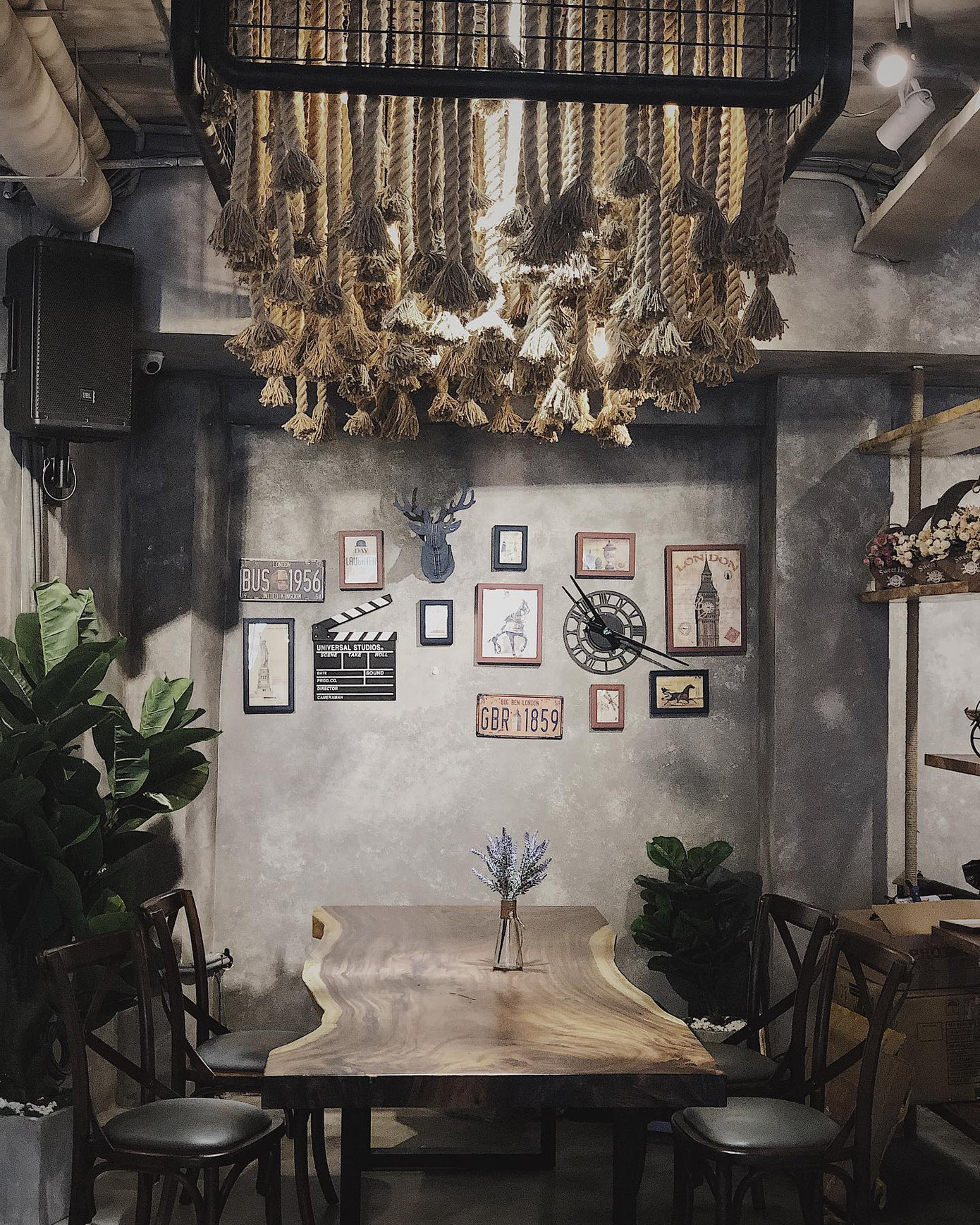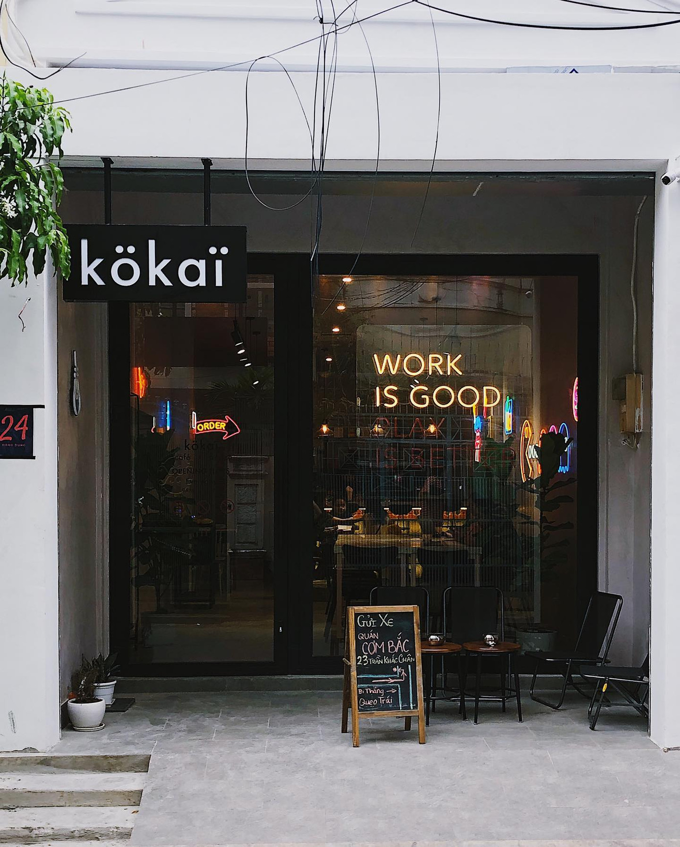 Một tọa độ check-in rất ấn tượng, từ mặt tiền décor chữ trắng viền đen trên nền xám khá lạ cho tới phong cách décor phóng khoáng bán cổ điển bên trong. Trần nhà cao phối những mảng xanh hợp lý và những dãy bàn được bày trí rất thoáng tạo cảm giác dễ chịu. Tiệm còn rất nhiều khu check-in đẹp lung linh, đảm bảo hội mê sống ảo sẽ không thể rời mắt.