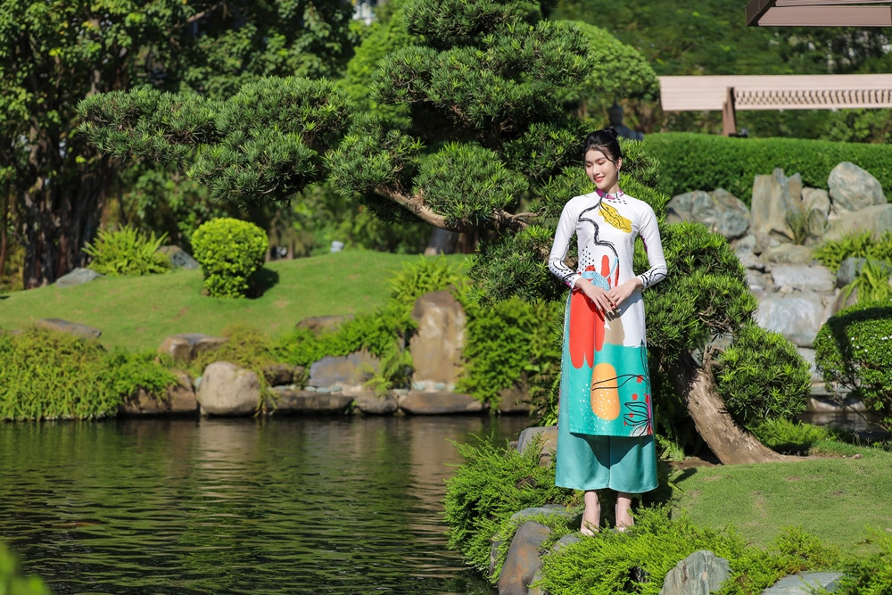 Điểm ấn tượng ở bộ sưu tập lần này là mỗi chiếc áo dài như một tác phẩm nghệ thuật nhiều sắc màu, sống động.
