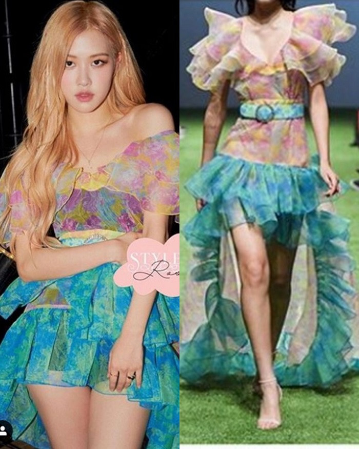 Hẳn netizen còn chưa quên màn cắt váy đỉnh cao này. Thiết kế gốc vốn rườm rà, khó mặc và màu sắc còn bị nhiều người chê “phèn”. Chỉ cần cắt bớt phần thân giữa đi, nhấc cao đuôi váy lên là Rosé đã có ngay một chiếc váy mới sang chảnh.