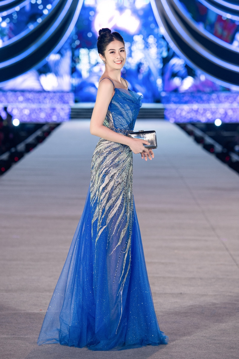 Hoa hậu Đỗ Mỹ Linh lựa chọn một bộ cánh mềm mại của NTK Võ Thành Can. Với sắc xanh tương đồng với màu của biển cả, nàng hậu toát lên vẻ đẹp tựa nữ thần. Việc tham gia thành phần Ban giám khảo của cuộc thi Hoa Hậu Việt Nam trong 2 năm liên tiếp là minh chứng cho vẻ đẹp tri thức và tài năng của Hoa hậu Đỗ Mỹ Linh.