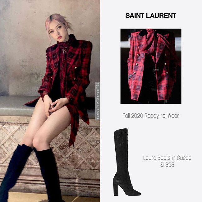 Được biết đôi bốt này thuộc thương hiệu Saint Laurent mà Rosé làm gương mặt đại diện, có giá lên tới 1,338 đôla (khoảng 33 triệu đồng). Quả thực khi kết hợp với váy hay quần ngắn thì đôi bốt giúp tôn đôi chân dài của Rosé lên hết mức.