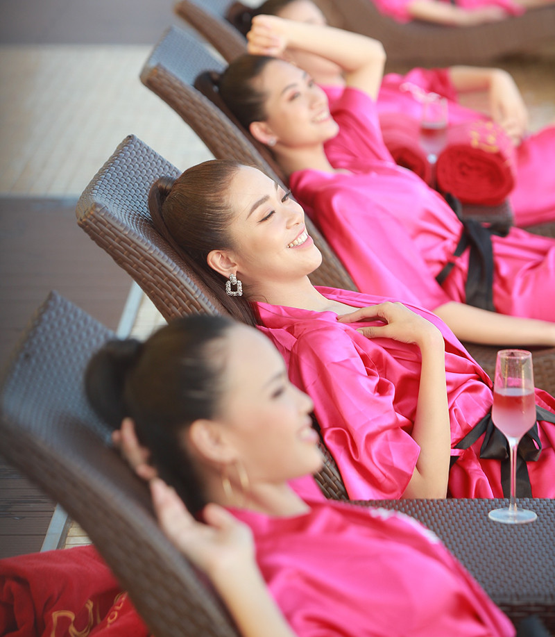 Dàn thí sinh Top 60 đã có buổi chụp ảnh bikini tại bể bơi của khách sạn.