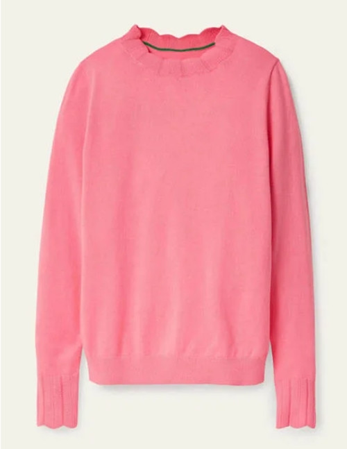 Kate mặc chiếc áo len hồng giá 65 bảng (2 triệu đồng) của thương hiệu Boden và quần giá 130 bảng (4,2 triệu đồng) của Jigsaw - là món đồ cô đã từng mặc trong lần đến thăm một trung tâm hỗ trợ trẻ em hồi năm 2019.