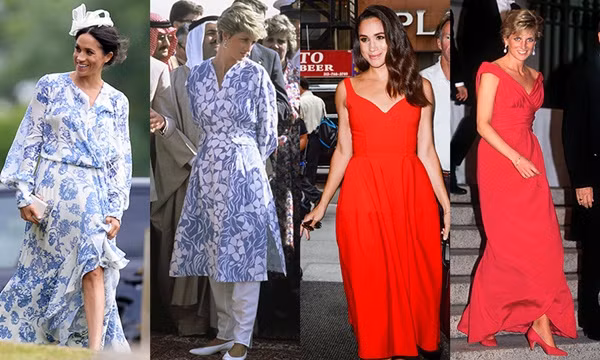 Công chúng ở Anh, đặc biệt là các fan của Hoàng gia, thường hay so sánh Kate và Meghan với Công nương Diana, do họ đều là những người có xuất thân bình thường mà bước vào hoàng tộc. Thực tế, Meghan dường như còn nhiều lần có cách ăn mặc khiến người ta liên tưởng đến mẹ chồng cô, như thể cô cố gắng xây dựng hình tượng giống Công nương Diana.