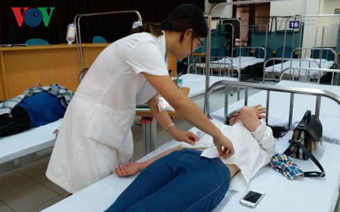 Tại Bệnh viện Đống Đa - chuyên khoa truyền nhiễm của thành phố, cũng đang trong tình trạng quá tải bệnh nhân. Mỗi ngày, Bệnh viện tiếp đón gần 500 bệnh nhân nghi sốt xuất huyết đến khám, trong đó khoảng 20% trường hợp phải nhập viện.