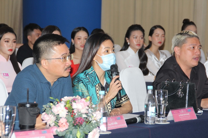 Bà Phạm Kim Dung, Phó trưởng Ban Tổ chức Hoa hậu Việt Nam 2020 nhận xét các phần biểu diễn của thí sinh. Ban Giám khảo phần thi Người đẹp tài năng còn có nhà báo Vũ Tiến, Á hậu Phương Nga, Giám đốc Âm nhạc Phúc Bồ, biên đạo Khoa Nguyễn…