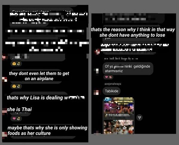 Đáng chú ý là sau sự việc của nhóm fan Trung Quốc, một nhóm fan khác người Thổ Nhĩ Kỳ cũng bị bóc phốt khi có hành vi tương tự. Trong nhóm chat, những người này từ bày tỏ sự ghét bỏ đối với kỹ năng của Lisa, sau đó tỏ ý khinh miệt xuất thân và lấy người Thái cùng văn hóa xứ Chùa Vàng làm cớ ngụy biện.