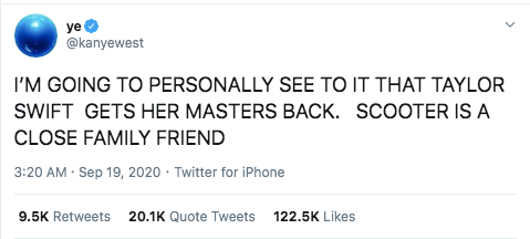 Cụ thể, chủ nhân ca khúc Heartless ghi rằng: "Với tư cách cá nhân, tôi hi vọng quyền sở hữu bản master những ca khúc sẽ về tay Taylor Swift. Dù Scooter (Braun) với gia đình tôi là những người bạn thân thiết” (tạm dịch).