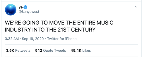 Đây chỉ là vài tweet trong vô số những dòng tweet liên quan đến những vấn đề về bản quyền và sở hữu trí tuệ trong ngành công nghiệp âm nhạc được Kanye West liên tục nhắc đến trên tài khoản Twitter của mình từ ngày 15/9 đến giờ.