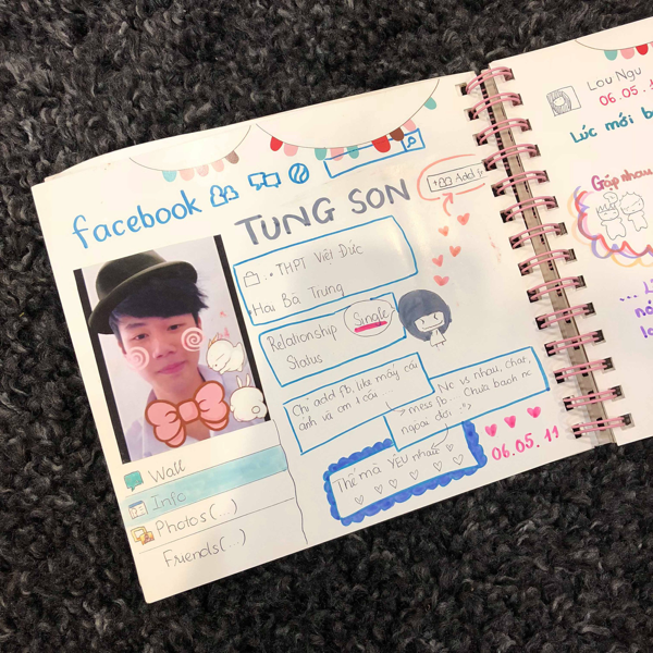 Mới đây, cô nàng Trang Lou đã chia sẻ lại hình ảnh của quyển sổ mà cô tự tay thiết kế, vẽ vời để tặng cho người bạn trai Tùng Sơn của mình năm 17 tuổi. Không chỉ ghi lại những hình ảnh thời "trẻ trâu" mà quyển sổ đáng yêu này còn chứa đựng cả những ước mơ, lời tâm tình thời áo trắng của cô nàng ngày ấy.