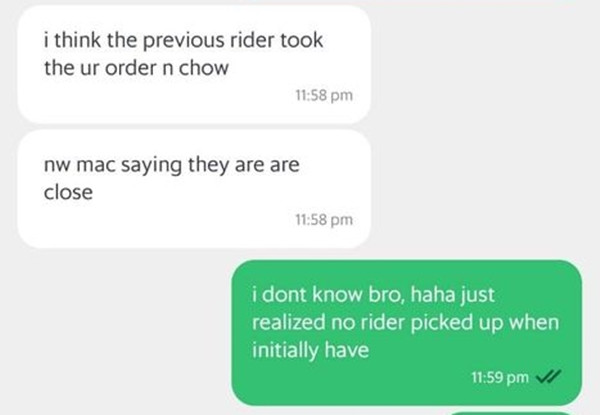 Xem trên ứng dụng Grab thì anh thấy tài xế đã nhận thức ăn của mình ở quán, nhưng anh chờ mãi cũng không thấy thức ăn tới.