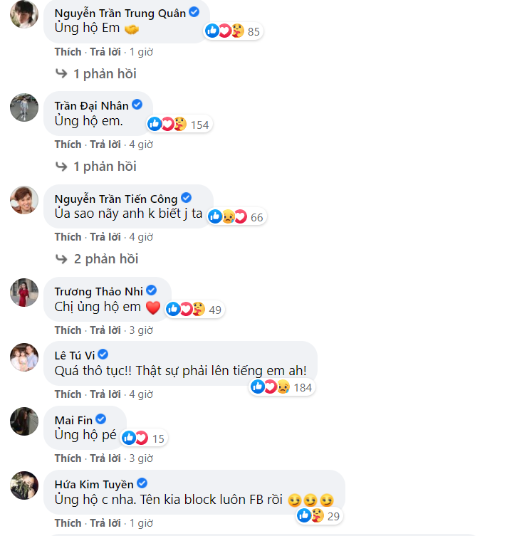 Ở bài đăng trước đó của Thái Trinh, nhiều sao Việt cũng vào ủng hộ, đồng tình với việc nói ra sự thật của cô. Hiện sự việc này vẫn đang là chủ đề được nhiều người quan tâm trên các trang mạng xã hội.