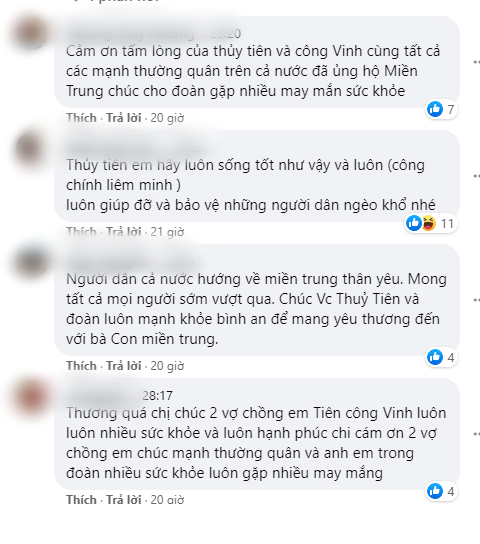 Những bình luận của cộng đồng mạng về tấm lòng của vợ chồng Thủy Tiên - Công Vinh.