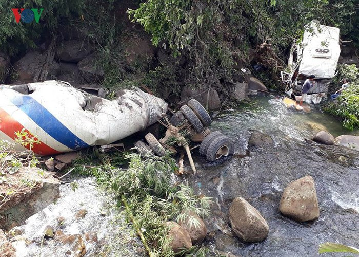 Thông tin ban đầu, tại hiện trường đã có 10 người chết, chưa rõ số người bị thương. Được biết trên xe khách có 12 người. Nguyên nhân ban đầu, hai xe đi cùng chiều và đang xuống dốc, xe bồn mất phanh lao nhanh đâm vào xe khách, và cả hai xe lao xuống suối sâu nhiều đá tảng.