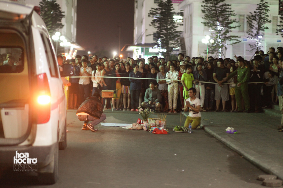 Chia sẻ với phóng viên, một người dân kinh doanh tại tòa nhà này cho biết: “Khi bác đang làm đồ ăn cho khách ở trong nhà, bất ngờ bác nghe một tiếng động lớn phát ra, chạy ra thì phát hiện thi thể của một cháu bé sơ sinh, còn nguyên dây rốn, toàn thân không có áo quần, thi thể cháu bé bị biến dạng”.