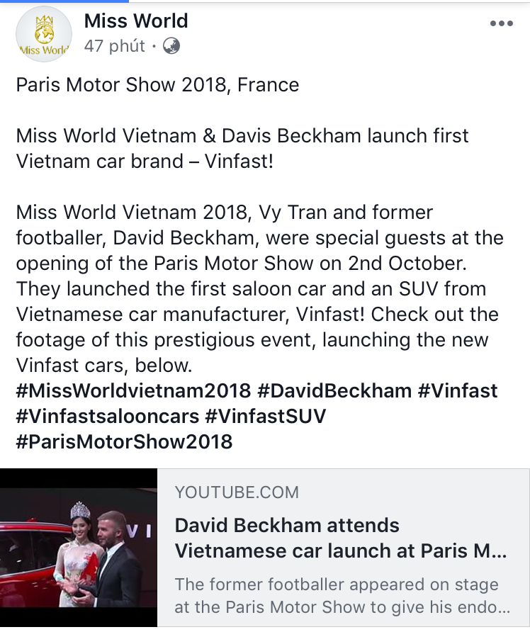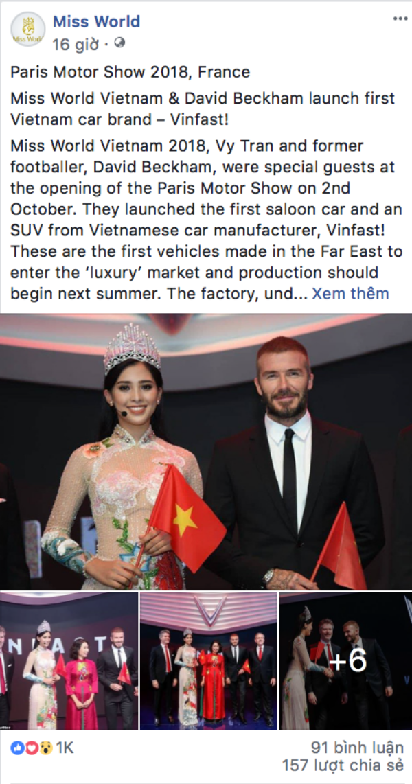 Mới đây, trên trang fanpage chính thức của Hoa hậu Thế giới – Miss World bất ngờ đăng tải hàng loạt hình ảnh của nàng Hậu trong sự kiện tham gia cùng David Beckham.