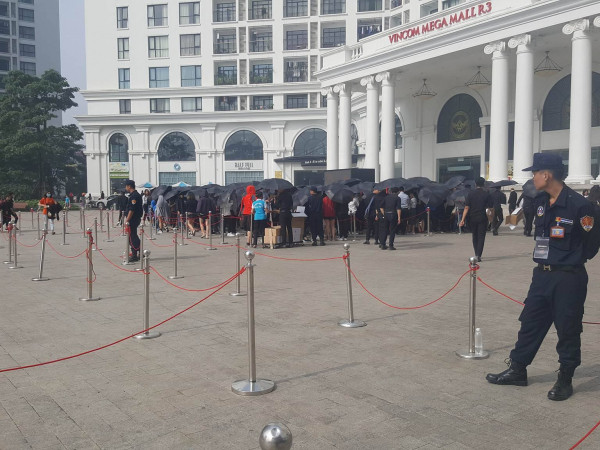 Store H&M nằm dưới tầng hầm B2 của Vincom Mega Mall Royal City, nhưng hàng người xếp hàng chờ đợi đã dài ra tận sân chung của Royal City. Được biết có những bạn đã chờ đúng 12 giờ đồng hồ trước giờ mở cửa, nghĩa là có mặt tại đây từ đêm hôm trước.