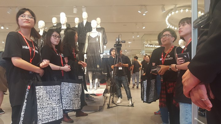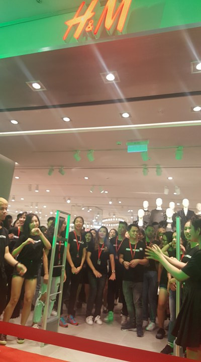 Các nhân viên H&M đã sẵn sàng mở cửa đón khách.