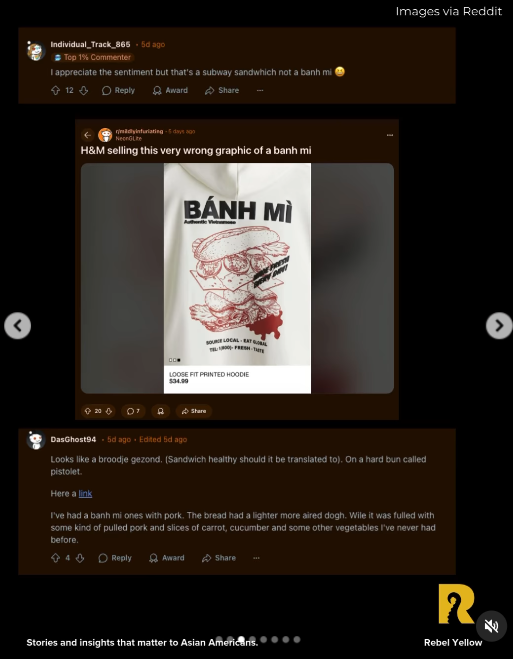 Thoạt nhìn, nhiều cư dân mạng Việt vui mừng, tự hào khi món ăn đường phố rất phổ biến tại Việt Nam trở thành nguồn cảm hứng mới cho thương hiệu H&M. Tuy nhiên, hình ảnh minh họa ổ bánh mì nhanh chóng gây bàn luận dữ dội.